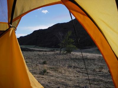 Jade participe activement à l'élaboration du campement avec une logique toute féminine: démonte les piquets de tente fraichement montés, saute sur les thermarests qui se font gonflés, mais par contre enlève toujours ses chaussures et ferme la moustiquaire derrière elle.